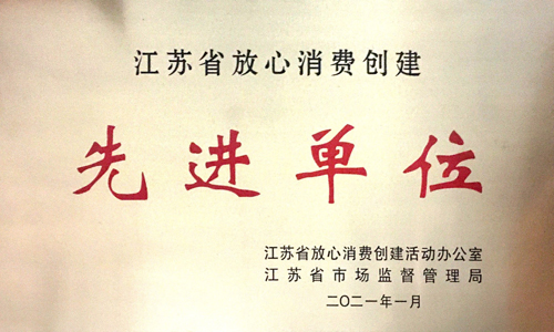 公司荣获江苏省放心消费创建先进单位
