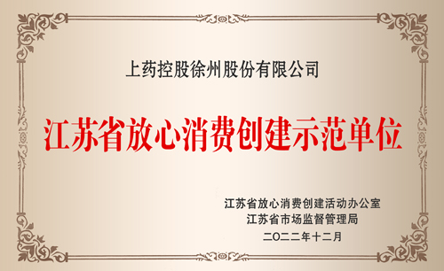 上药徐州荣获“江苏省放心消费创建示范单位”称号